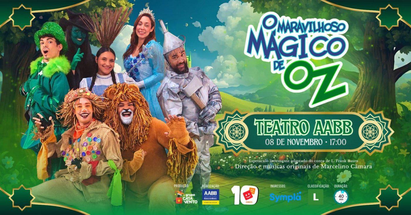 Baseado no livro “Além do Arco-Íris”, de Marcelino Câmara, o espetáculo O Maravilhoso Mágico de Oz é uma produção do Grupo Catavento que transporta o público para uma jornada mágica repleta de fantasia, humor e emoção. Dorothy e seu fiel companheiro Totó são levados do Kansas para uma terra encantada, onde conhecem o Espantalho, o Homem de Lata e o Leão. Juntos, enfrentam a temida Bruxa Má do Oeste em busca do misterioso Mágico que poderá ajudá-los a voltar para casa.