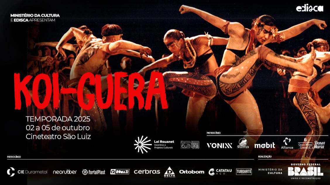Koi-Guera é um grito coreográfico que ecoa as vozes dos povos originários, denunciando o violento e silencioso etnocídio indígena. A obra da EDISCA resgata memórias, línguas e culturas que marcaram a formação do Brasil, questionando os conceitos de “civilização” e “modernidade” a partir do olhar indígena. Entre dança e teatro, o espetáculo provoca reflexões sobre nossa relação com a Terra e a urgência de defender o meio ambiente e os povos que nele habitam. Criada em 1997 e remontada em 2025, a obra reafirma sua atualidade ao convidar o público a repensar o mundo e a si mesmo em uma travessia coletiva pela vida.
