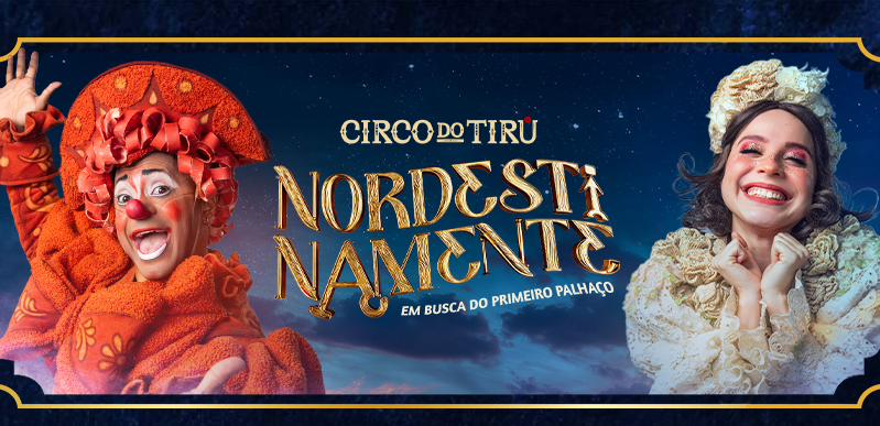 O humorista Tirullipa estreia o espetáculo Nordestinamente – Em Busca do Primeiro Palhaço, no Circo do Tirú. Pela primeira vez em cartaz em um shopping, a montagem reúne música, teatro, dança, poesia e números circenses, aliados a efeitos especiais e muita interatividade. A obra homenageia a cultura e o humor nordestino, trazendo à cena personagens que marcaram gerações. Com trilha sonora executada ao vivo, figurinos assinados por Bruno Oliveira e peças do mestre Espedito Seleiro, a produção reúne mais de 45 artistas entre músicos, bailarinos, acrobatas e atores, em uma grandiosa estrutura técnica.