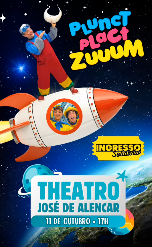 O Grupo Catavento apresenta “Plunct, Plact, Zuuum!”, uma aventura lúdica que leva o público a uma viagem intergaláctica cheia de descobertas e reflexões. Três amigos vindos de constelações distantes – Vega, a águia sonhadora, Draco, o dragão apaixonado pela natureza, e Leo, o leão estudioso – embarcam em um foguete construído para explorar o universo. No caminho, percebem que até mesmo o espaço sofre com os impactos do lixo e, ao retornarem à Terra, decidem assumir a missão de conscientizar todos sobre a importância de cuidar do meio ambiente. Uma experiência mágica que une imaginação, diversão e responsabilidade ecológica.