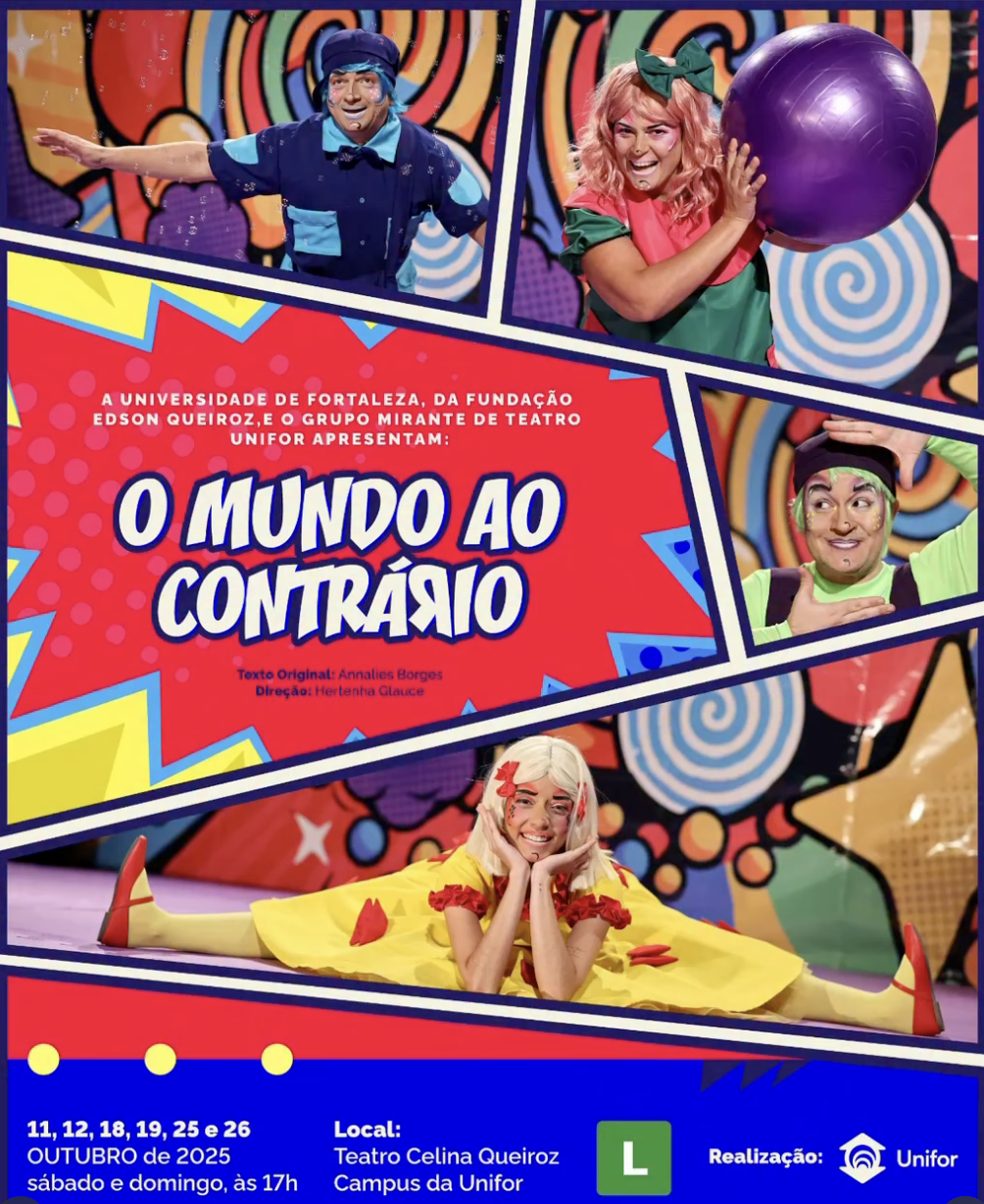 Na peça O Mundo ao Contrário, tudo é possível: charadas abrem portas, músicas param feitiços e até o tempo aprende a sorrir. O espetáculo chega para lembrar que a vida é feita de pausas, de imaginação e de afeto. Mais que uma montagem infantil, é um convite para todas as idades: parar um instante, rir com vontade e descobrir que o tempo que vale é o tempo vivido.