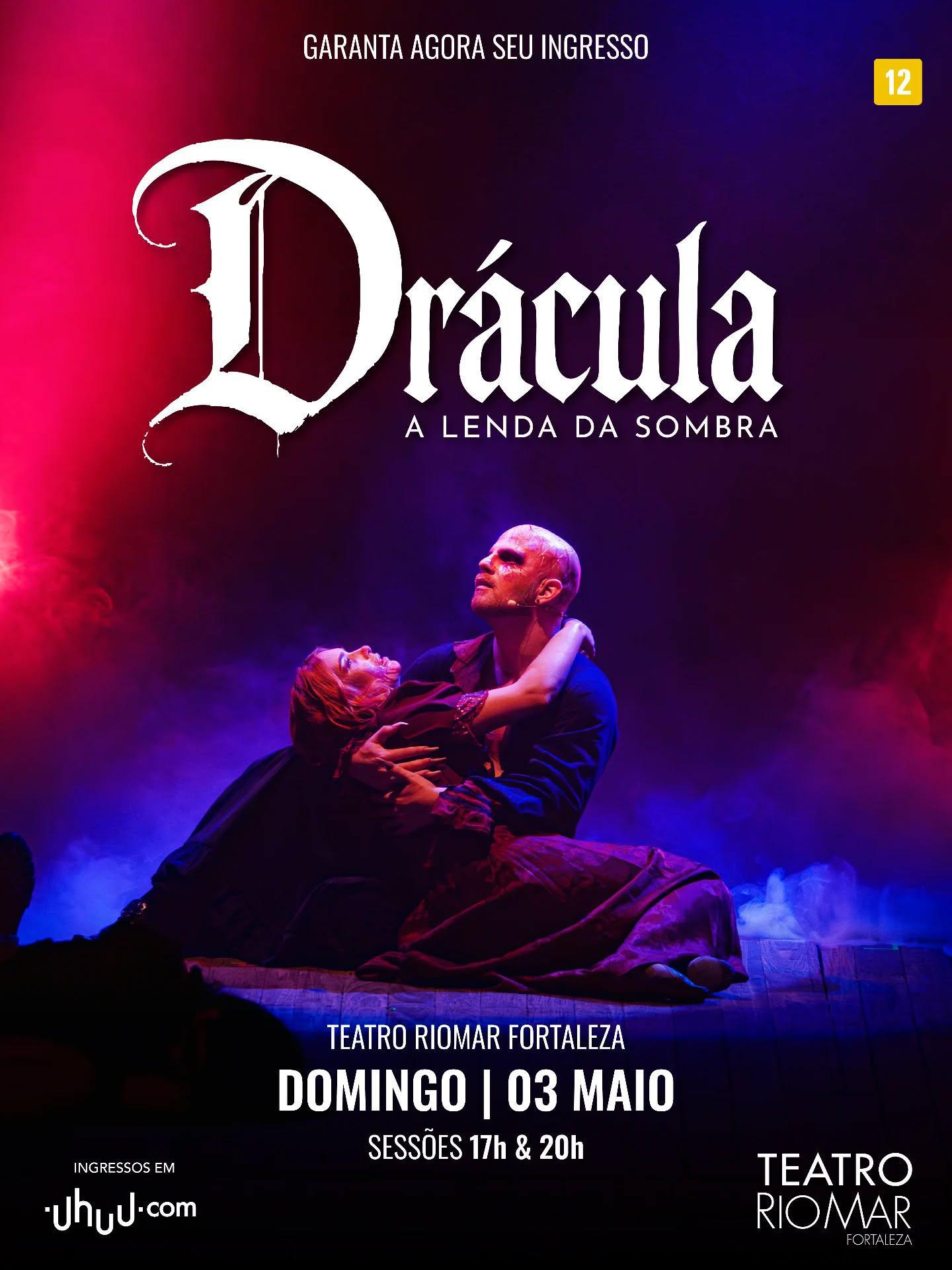 Inspirado no clássico de Drácula, “Drácula – A Lenda da Sombra” transforma o palco em uma experiência sensorial que atravessa terror, poesia e desejo. Com estética impactante e forte apelo visual e sonoro, a montagem dirigida por Iuri Cintra revisita o mito do vampiro em uma encenação que mistura teatro, performance e atmosfera cinematográfica, conduzindo o público por um jogo entre luz e escuridão, sedução e redenção.