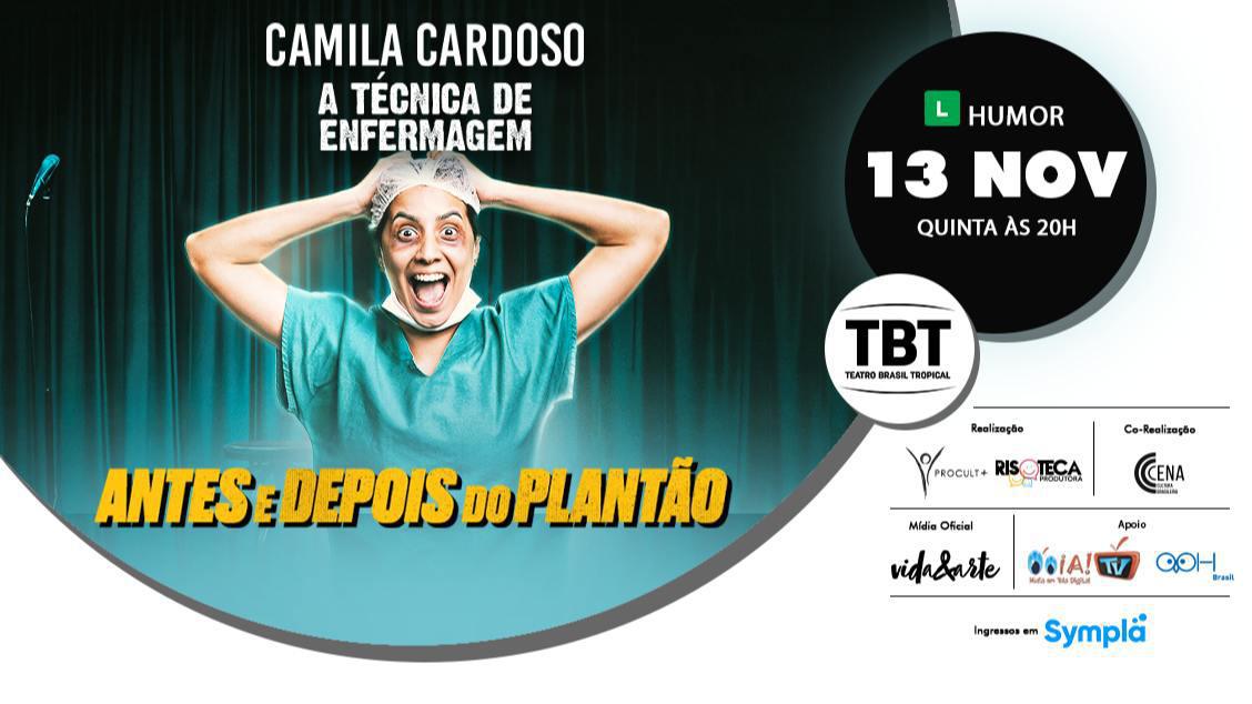 Com um humor direto das emergências, Camila Cardoso apresenta o espetáculo “A Técnica de Enfermagem – Antes e Depois do Plantão”, seu primeiro show solo de stand up comedy.
