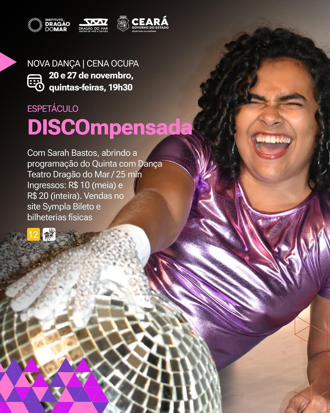 Com humor, brilho e muita ironia, DISCOmpensada, de Sarah Bastos, transforma o desajuste em potência criativa. O espetáculo questiona as coreografias sociais que tentam moldar nossos corpos e comportamentos, convidando o público a dançar fora do compasso — sem medo do exagero, da repetição ou do ridículo. Entre o glamour e o caos, o corpo encontra liberdade no que escapa, criando seu próprio ritmo e luz.