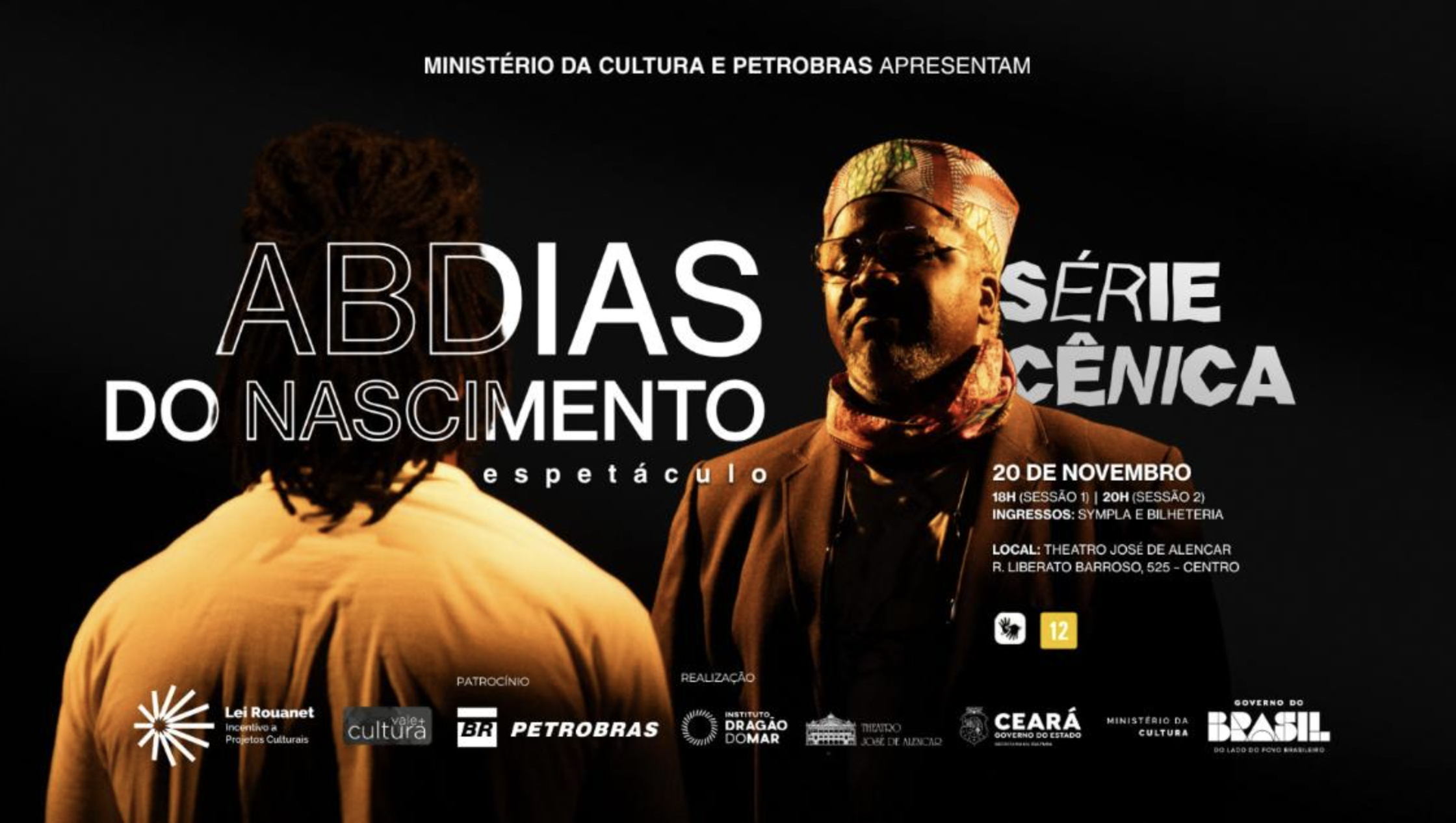 Em cena, Lincoln Oliveira incorpora Abdias — ativista, escritor, senador e fundador do Teatro Experimental do Negro — enquanto Fernando Porto interpreta o diretor que conduz a investigação teatral e simbólica desse legado. A montagem mistura afeto, denúncia, reflexão e força, convidando o público a sentir o peso histórico e a potência transformadora de Abdias do Nascimento na cultura brasileira.
