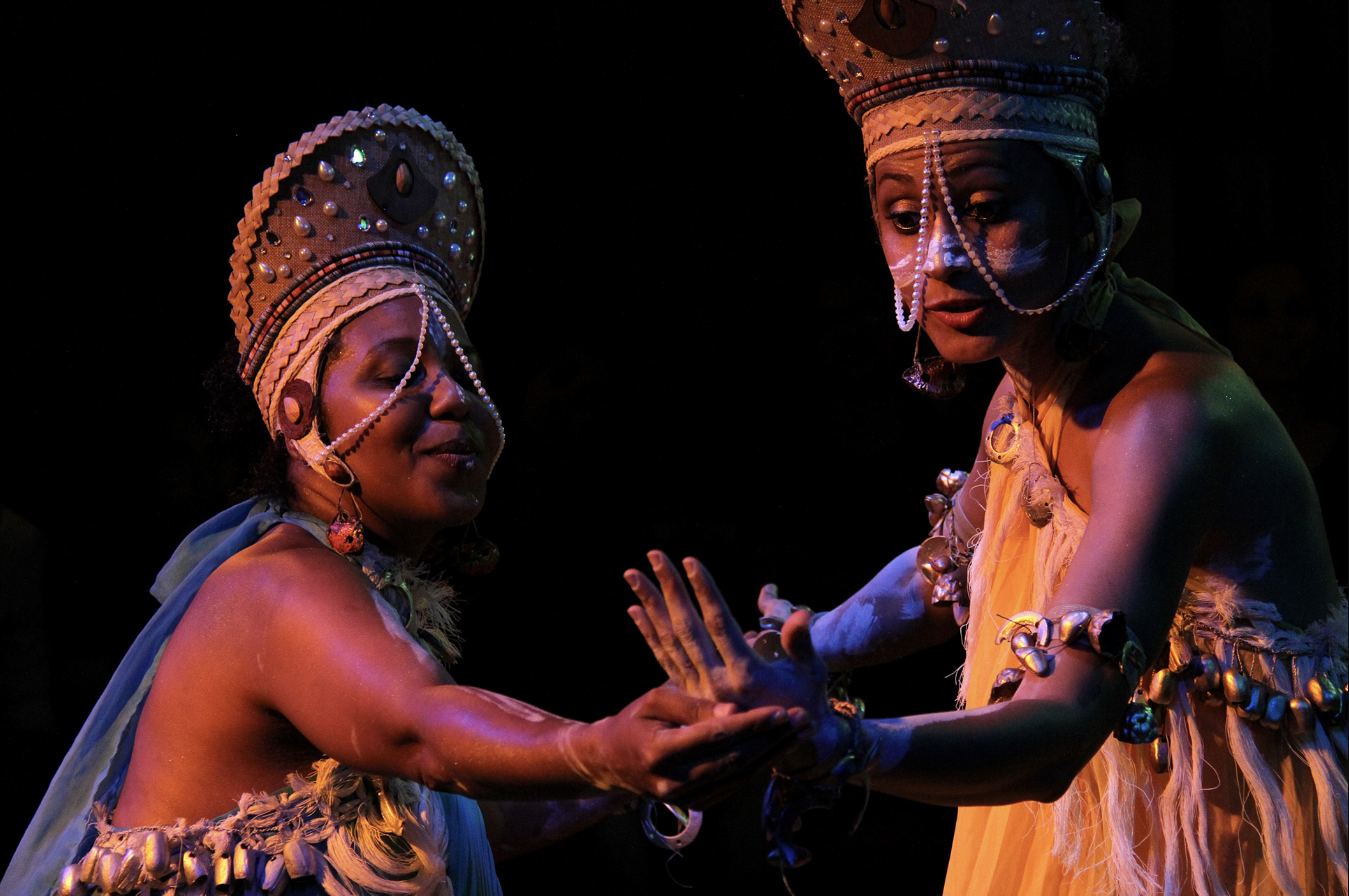 “Ombela”, do grupo O Poste Soluções Luminosas (PE), é um espetáculo que mergulha em narrativas de origem africana para refletir sobre criação, ancestralidade e pertencimento. Inspirada em mitos e cosmologias do continente africano, a montagem constrói uma experiência cênica sensorial que atravessa corpo, palavra, música e imagens poéticas. Em cena, a história de Ombela evoca a força da memória ancestral e convida o público a revisitar saberes que conectam humanidade, natureza e espiritualidade.