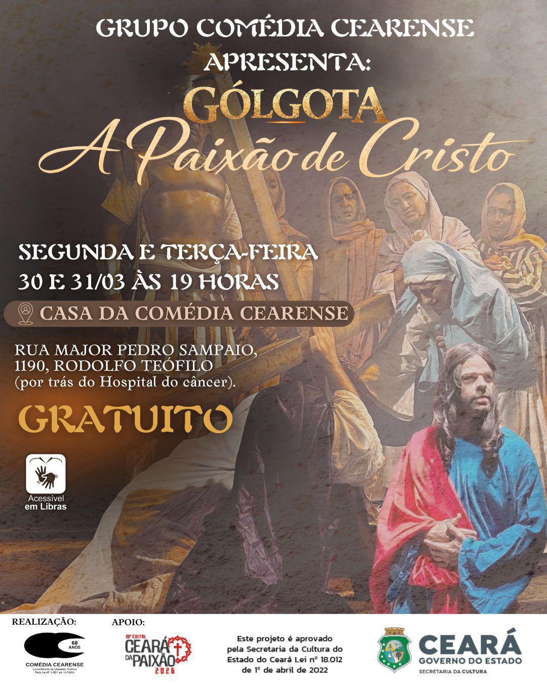 Com forte carga emocional e apelo popular, o espetáculo “Gólgota – A Paixão de Cristo” retorna em nova temporada com a assinatura do Grupo Comédia Cearense, trazendo à cena uma encenação intensa e sensível de um dos relatos mais marcantes da humanidade. A montagem aposta na entrega dos atores, na força simbólica da fé e na construção imagética para conduzir o público por uma experiência tocante, reafirmando o poder do teatro como espaço de reflexão, emoção e encontro coletivo.