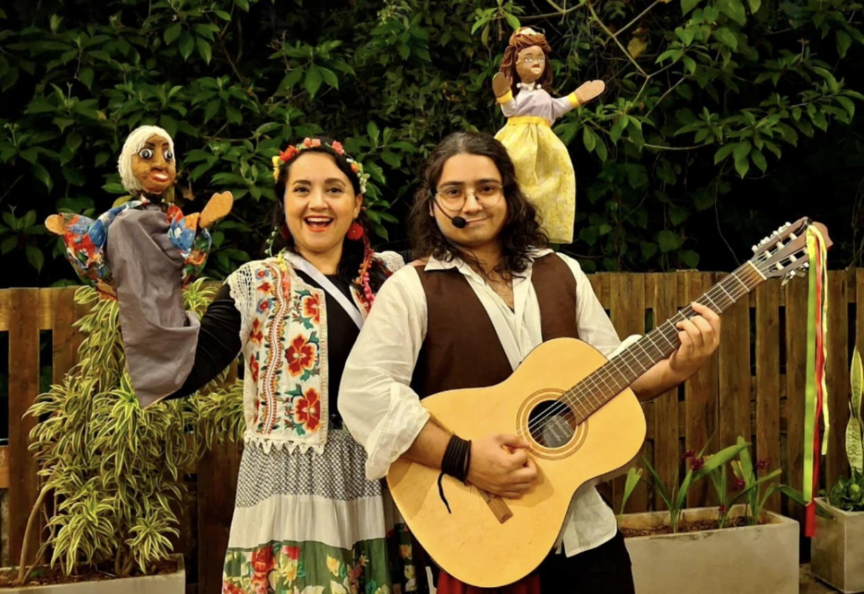 “Histórias da Bisavó” é um espetáculo híbrido que entrelaça teatro de bonecos, atuação e objetos para construir uma narrativa poética sobre memória e tradição. A partir da figura de uma andarilha que carrega histórias em sua cesta de palha, a montagem conduz o público por lembranças que atravessam gerações, evocando afetos e saberes da oralidade. Com música ao vivo e uma atmosfera sensível, a peça transforma contos populares em experiência sensorial e terapêutica, propondo um respiro diante dos excessos do mundo contemporâneo, especialmente para o público infantil.